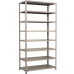 Полки стеллажей имеют стандартные размеры и могут крепиться к вертикальным стойкам с регулировкой по высоте. Разная высота стоек позволяет в сочетании с использование широкого выбора полок собирать стеллажи необходимых размеров и конфигураций. Конструкция позволяет быстро изменять высоту полок.